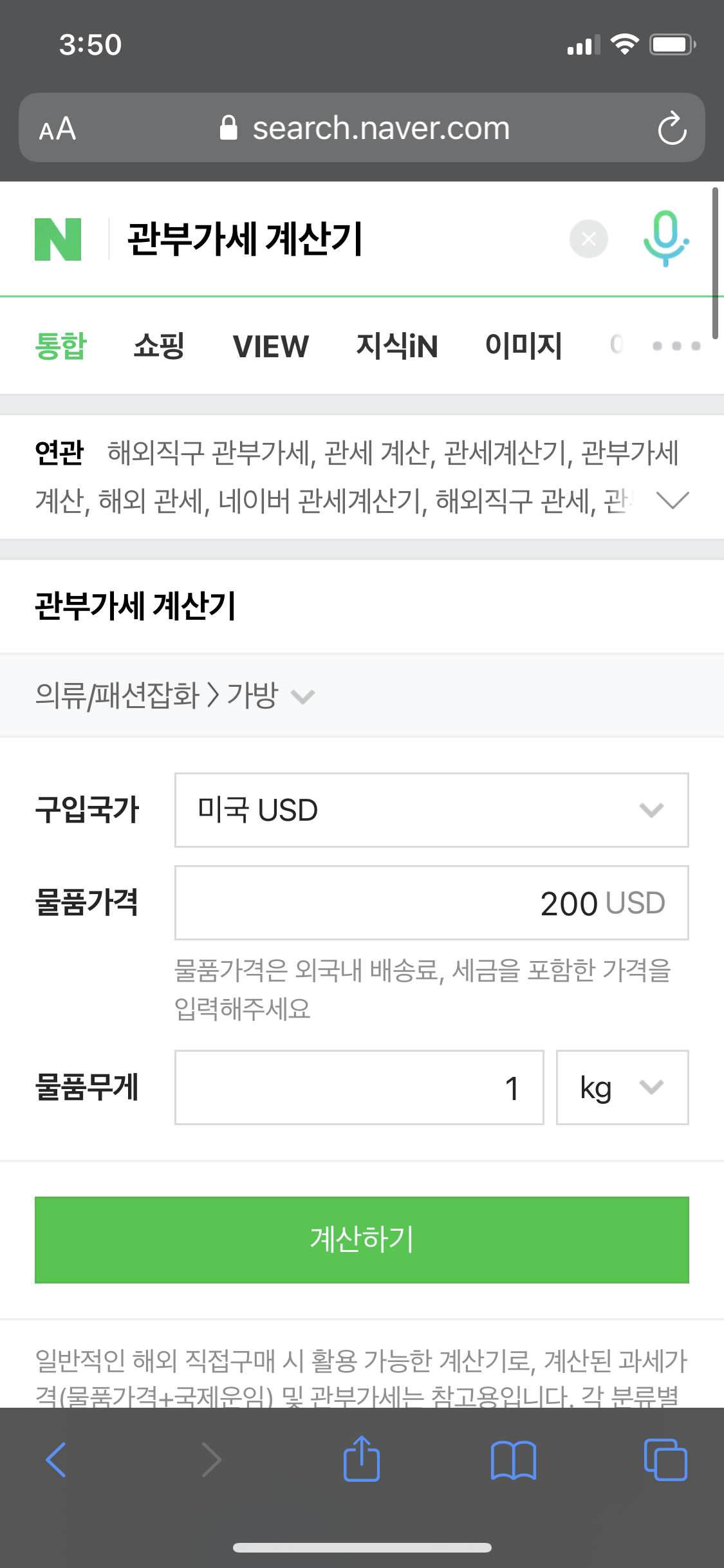 네이버에 관부가세 계산기를 검색하시면 바로 확인이 가능한데요.