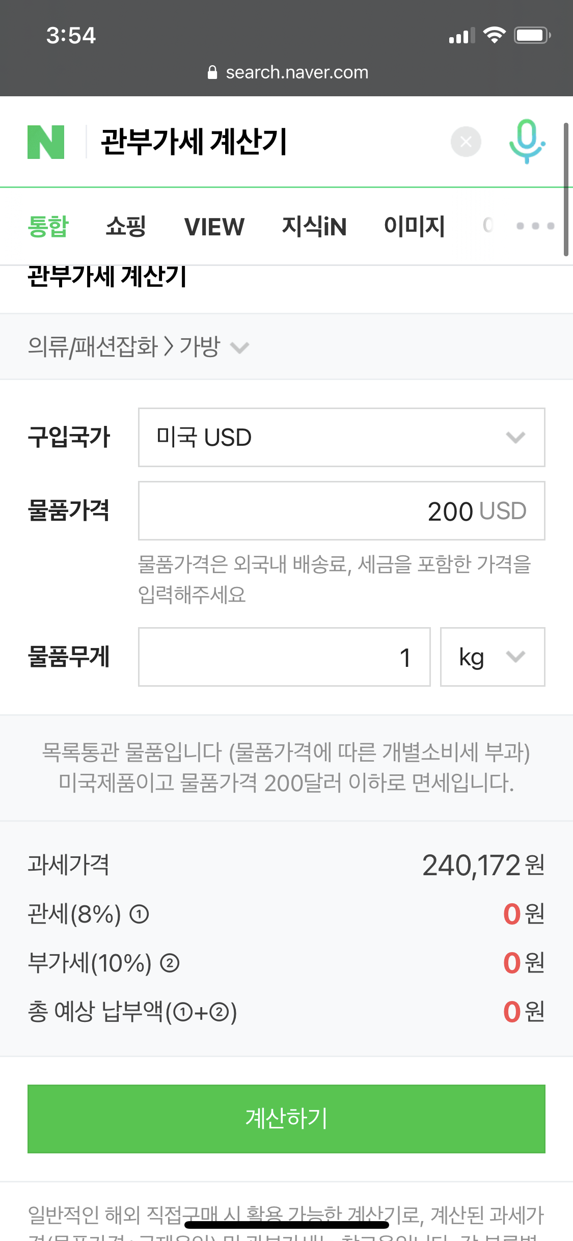 네이버에 관부가세 계산기를 검색하시면 바로 확인이 가능한데요.