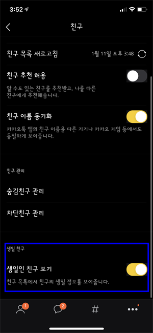 이렇게 설정하시면 카카오톡 생일 알림 비공개 성공이랍니다!!