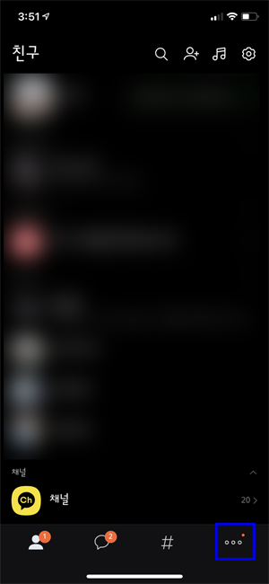 1. 우측 하단에 점 세개(안드로이드) or 물결(아이폰) 터치해주세요.