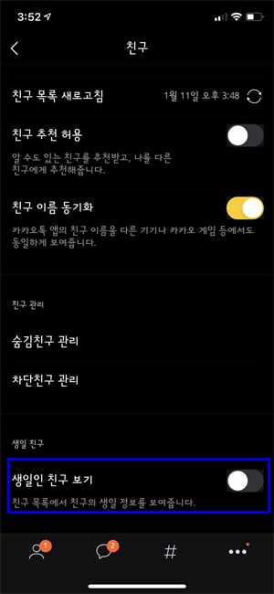 이렇게 설정하시면 카카오톡 생일 알림 비공개 성공이랍니다!!