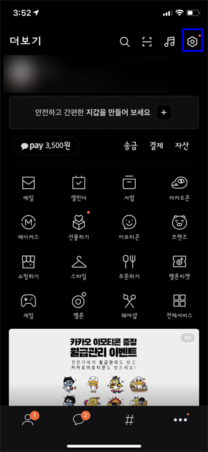 4. 맨 위에 '카카오계정' 터치해주세요.