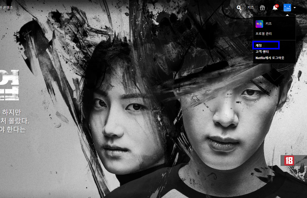 넷플릭스 사이트로 접속하셔서 로그인을 해주시고 우측 상단에 프로필 썸네일을 클릭.
