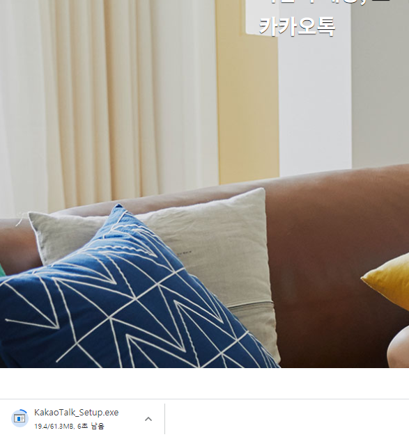 '다운로드'를 누르면 좌측 하단에 카카오톡 PC버전 다운로드가 진행되고 있는걸 확인하실 수 있는데요. 다운로드 완료 후에 클릭하면 바로 설치를 시작하실 수 있습니다.