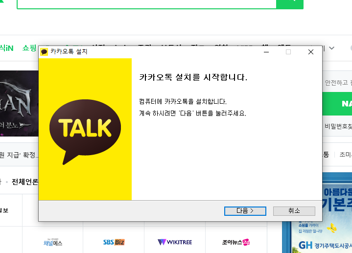 카카오톡 설치를 시작한다는 문구가 나오면 '다음' 버튼을 눌러주세요.