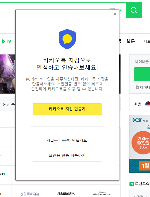 스마트폰 카카오톡에서 인증번호를 확인하고 작성해주셔야 하는데요.