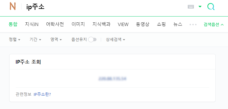 가장 쉽고 간단한 방법으로 네이버 검색창을 이용한 공인 IP주소 확인하는 방법인데요. 너무나 쉽게 즉시 확인하실 수 있습니다.