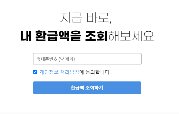 휴대폰번호를 입력하고 환급액 조회하기를 누르면 바로 조회가 가능하신데요.