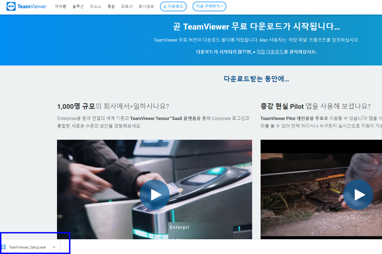 다운로드가 시작되고 왼쪽 하단에 표시된 파일을 클릭하시면 바로 실행이 가능하세요.