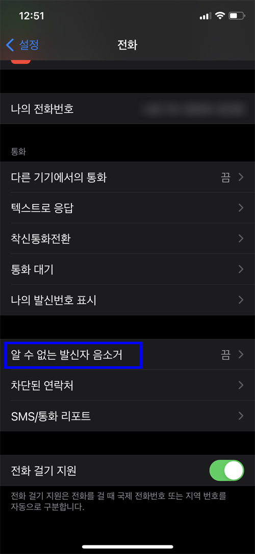 - 아이폰 '발신자 표시제한' 전화수신 차단