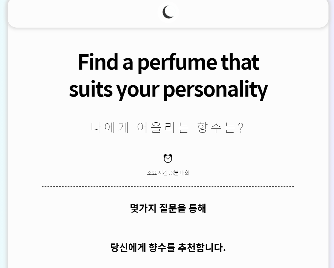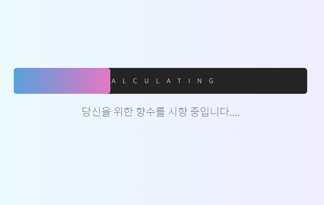 10개의 문항을 선택하고 잠깐 기다리면 선택지 답변에 따라서 향수를 정해주는데요.