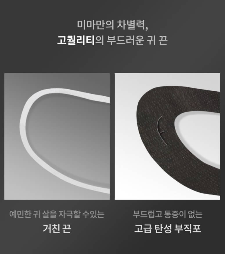 미마 마스크의 고퀄리티 부드러운 귀끈은