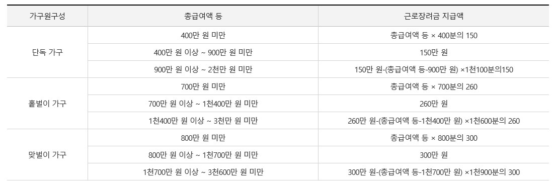 ▶ 홑벌이가구: 최대 260만원 (총 급여액 700만원 이상 ~ 1,400만원 미만인 경우)