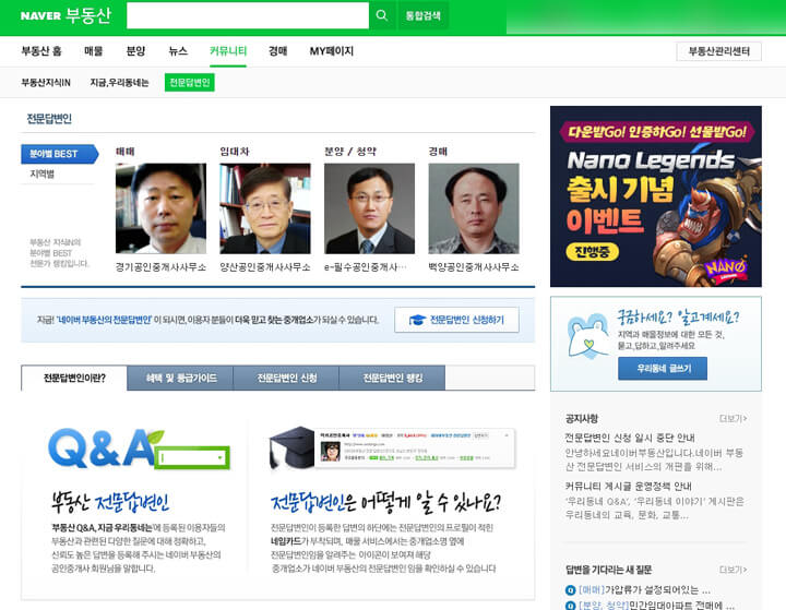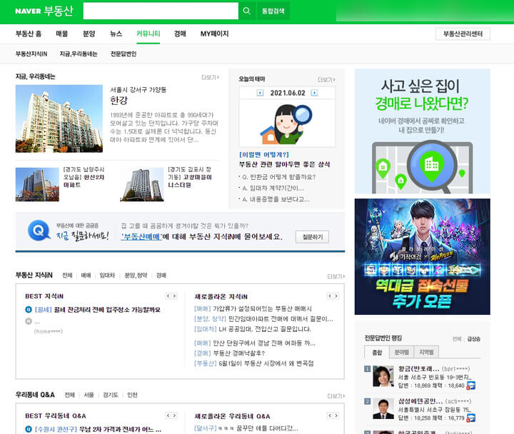 네이버 부동산에서 운영하는 커뮤니티를 이용하시면 부동산에 관한 궁금한 내용을 전문가에게 답변받을 수 있습니다.