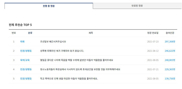 2021.07.19 - [바로가기] - 청와대 국민청원 홈페이지 바로가기