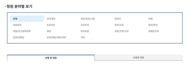 분야별 청원을 확인하실 수 있습니다.