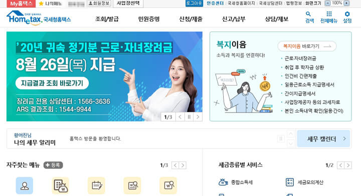 먼저 국세청 홈텍스 바로가기를 통해서 웹사이트로 접속해주세요.