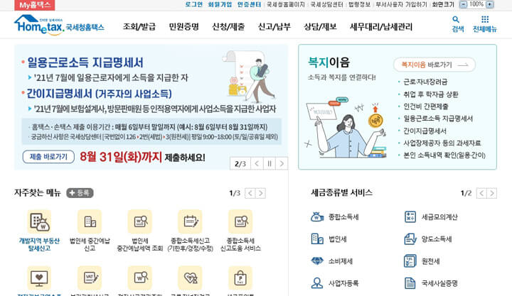 먼저 국세청 홈텍스 바로가기를 통해서 해당 웹사이트로 접속해주시면 됩니다.