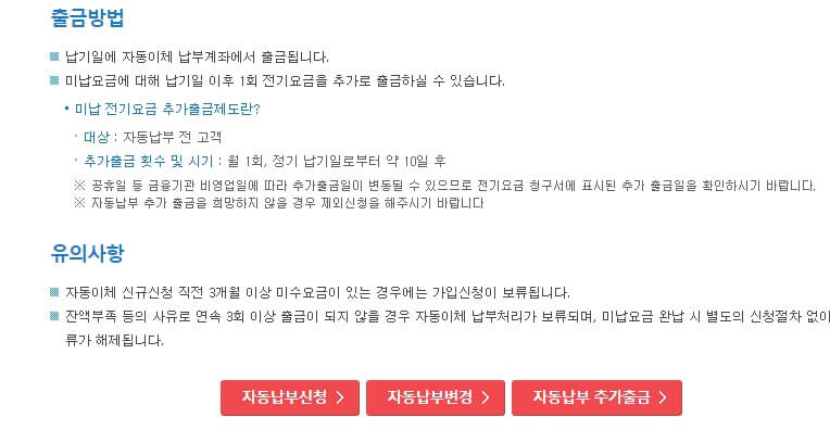 미납 전기요금 추가 출금 제도를 확인하실 수 있는데 추가 출금 제도는 미납요금에 대해 납기일 이후 1회 전기요금을 추가로 출금하는 제도입니다.