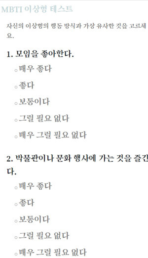 - MBTI 이상형테스트