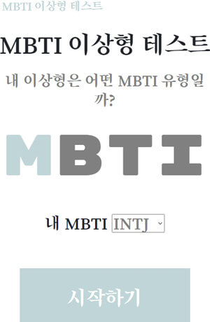 나의 MBTI를 선택하신 후 '시작하기'를 눌러주시면 됩니다.