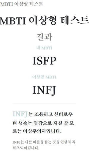 - MBTI 이상형테스트