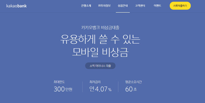 살다 보면 갑작스럽게 큰돈이 나가야 하는 일이 종종 있습니다. 평소 이럴 때를 대비해서 모아둔 돈이 있다면 다행이지만 요새는 워낙 현금으로 큰돈을 가지고 있는 경우가 드물기 때문에 막상 이런 일이 닥치면 당황하기 마련인데요. 카카오뱅크 비상금 대출을 이용하면 모바일로 쉽고 간편하게 신청하면서 착한 금리로 비상금을 이용하실 수 있습니다. 오늘은 카카오뱅크 비상금대출 조건과 이자 그리고 한도와 상환하는 방법까지 자세하게 알아보는 시간을 가져보도록 하겠습니다.